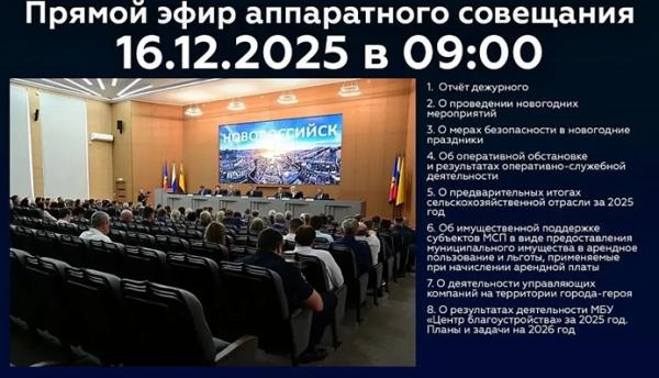 16 декабря в 09:00 начнется очередное аппаратное совещание в администрации муниципального образования город Новороссийск. Присоединиться к обсуждению важных для города-героя вопросов смогут все жела...