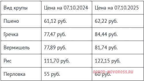 Я сравнила цены на крупу для каш в Новороссийске в октябре 2024 и в октябре 2025 годов. Согласно данным управления экономического развития города Новороссийска, стоимость основных видов круп изменилась следующим образом.