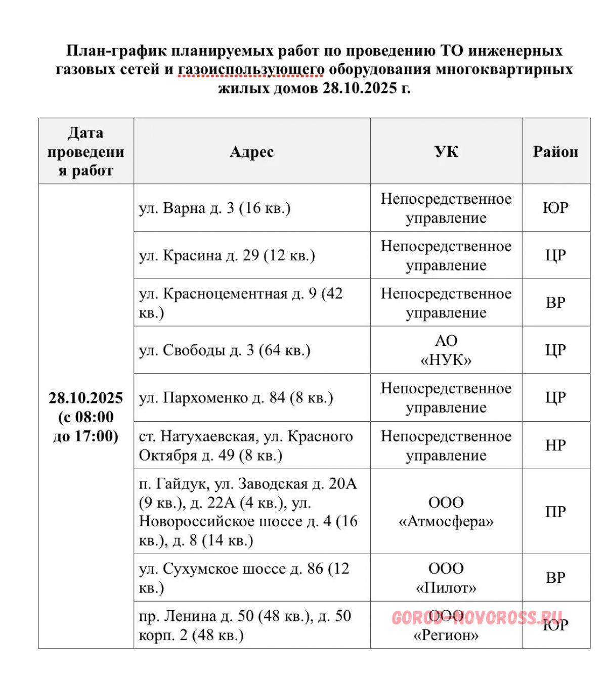 Плановое и срочное отключение электро- и газоснабжения в Новороссийске 28.10.2025