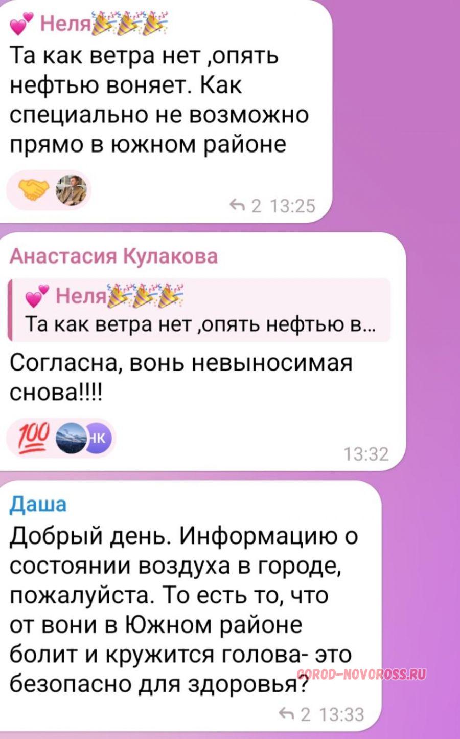 Сегодня, 8 ноября, в чате муниципального центра управления стали поступать многочисленные сообщения от обеспокоенных новороссийцев – запах нефтепродуктов стал для них невыносим.