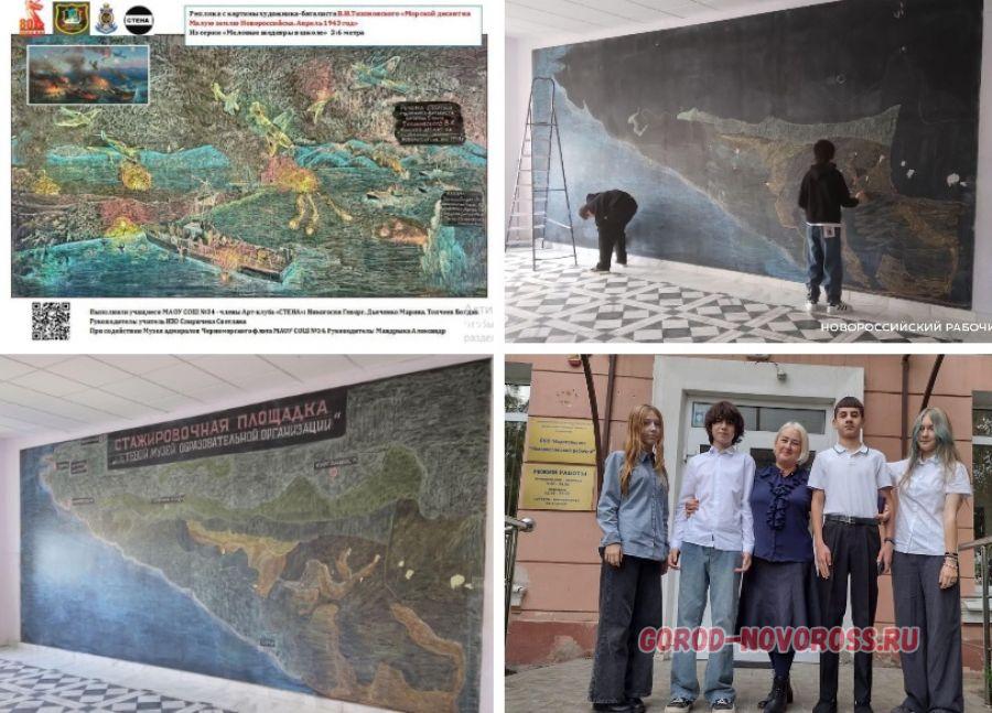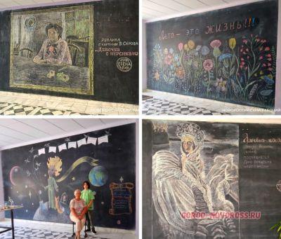 «Девочка с персиками», «Мадонна Литта» и «Незнакомка». Величайшие шедевры мировой живописи школьники Новороссийска воссоздают на большой графитовой доске. Детьми уже выполнено 30 меловых работ. Впереди «Джоконда» Леонардо Да Винчи. А почему бы и нет? Нет ни одного человека, который при виде этих картин, исполненных на обычной школьной доске, не воскликнул бы: «Ух ты, как здорово!». Даже школьные хулиганы замирают и с удивлением рассматривают то, что сделано самыми обычными школьниками. Ну нет, не совсем обычными: все воспитанники студии «Стена» школы №34 учились или учатся рисовать в художественных школах или студиях, и вообще большие таланты. Идея расписывать большие графитовые стены площадью 18 кв.м. пришла в голову учителю рисования Светлане Спиричевой. К первому сентября 2024 года педагог со своими талантливыми учениками нарисовали мелками картину по сюжету сказки «Маленький принц» Антуана де Сент-Экзюпери. Она произвела настоящий фурор! Учителя и школьники фотографировались у панно, выражая желание увидеть на доске что-нибудь еще. Директор школы Анастасия Артеменко благословила команду творить дальше. И понеслось. «Девочка с персиком», «Мадонна Литта» Леонардо да Винчи, «Царевна лебедь» Врубеля, «Лунная ночь» Куинджи, «Три богатыря», «Золотая осень» Исаака Левитана…. Студийцы за год нарисовали мелками более тридцати разнообразных картин. Команда юных художников пришла в гости в редакцию, чтобы рассказать о своих задумках. Кстати, подобных объединений нет ни в крае, ни в России! Коллег, а это современное искусство называется «меловой леттеринг», ребята нашли только в Японии. Знакомимся: Геворг Никогосян, Богдан Топчеев, Дарья Грецкая и Марина Дьяченко, ребята учатся в 7-8 классах школы №34. У каждого в командной работе своя зона ответственности. Марина – мастер композиции и пропорций, Геворг – специалист по деталям, Богдан великолепно рисует портреты и мастер светотени. Дарья – многообещающий новичок в этой команде, но она упорная и у нее многое получается, учитель ее хвалит. – К уроку по предмету ОДНКНР я дала ученикам задание нарисовать образ Христа. Геворг Никогосян пришел на урок с ликом Иисуса на бумажном листе. Это было что-то потрясающее! Я поняла, что передо мной не просто дети, а очень талантливые люди, которые что-то могут. Это натолкнула меня на мысль начать творить на больших графитовых досках, которых в нашей школе пять, – вспоминает начало Светлана Николаевна. Работают молодые художники самыми мягкими цветными мелками – всеми его сторонами и гранями (кстати, мелки ребятам приносит вся школа). Сначала рисуют тонким его кончиком, штрихуют боковыми стенками. На создание одной работы уходит 2-4 дня. А чтобы дотянуться до самых верхних уголков будущей картины, художникам приходится вставать на стремянку. Обычно Светлана Спиричева ищет оригинал картины. В клубе единомышленников вместе согласовывают будущие рисунки, надо, чтобы они нравились детям, обращает внимание учитель. Каждому члену команды дается свой сектор для прорисовки. – С «Незнакомкой» Крамского мы намучались, никак не могли усадить ее в карету, – с улыбкой вспоминает муки творчества Светлана Николаевна. – Она все время почему-то соскальзывала с сиденья. У «Девочки с персиками» не удавались губы и выражение лица. Пришлось повозиться. «Мадонна Литта