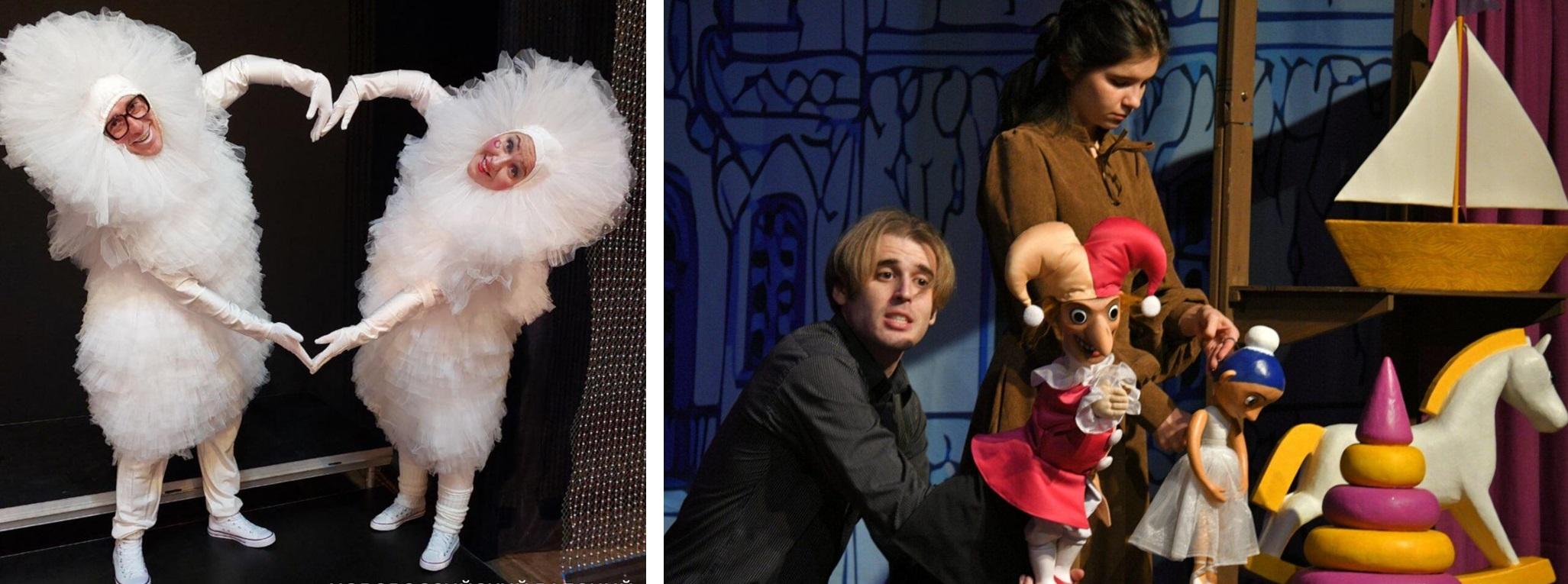 Самые маленькие зрители окунутся в атмосферу зимней сказки, посмотрев спектакль «Где спят снеговики» (0+) от нашего кукольного театра. Там можно будет увидеть сказочное представление, потрогать «снег» и слепить снежки.
