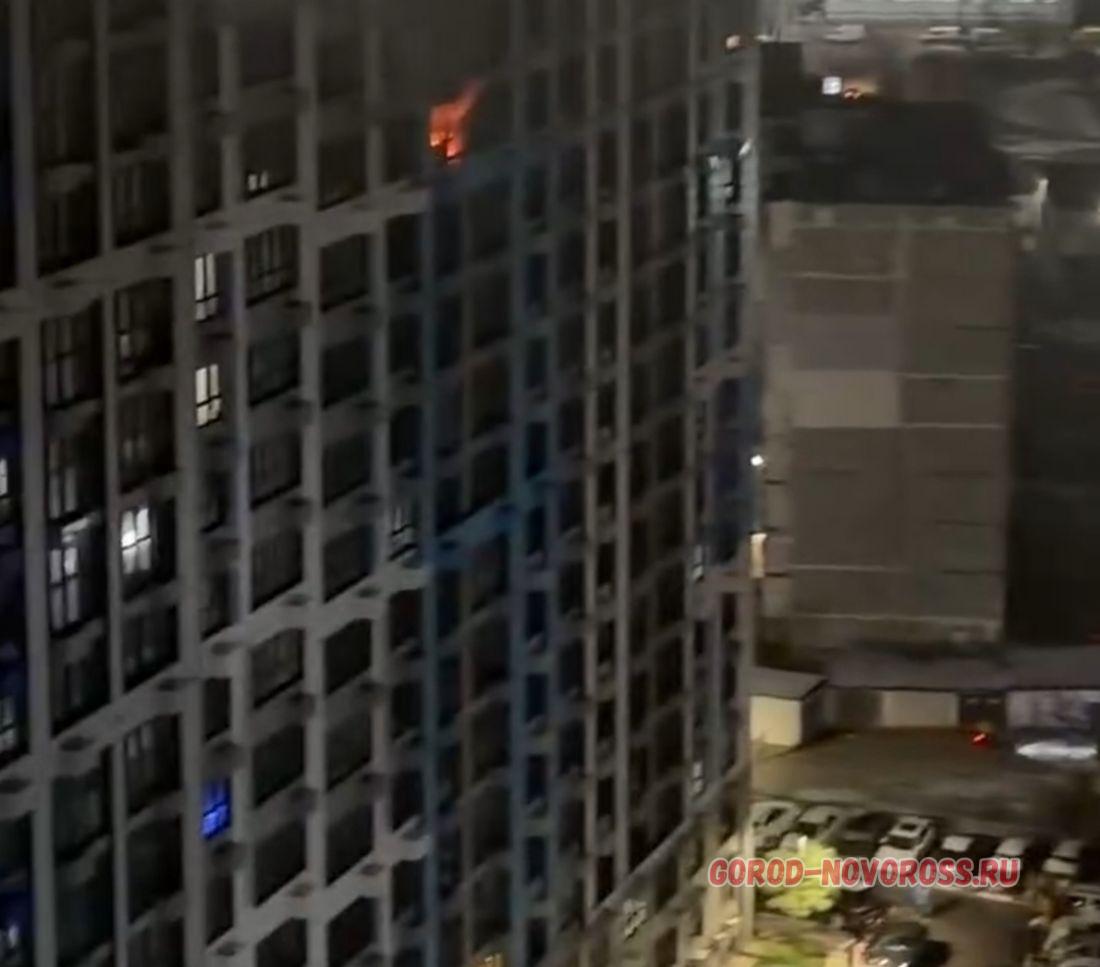 Фото и видео пожара в Южном районе Новороссийска вчера вечером люди начали размещать в соцсетях.