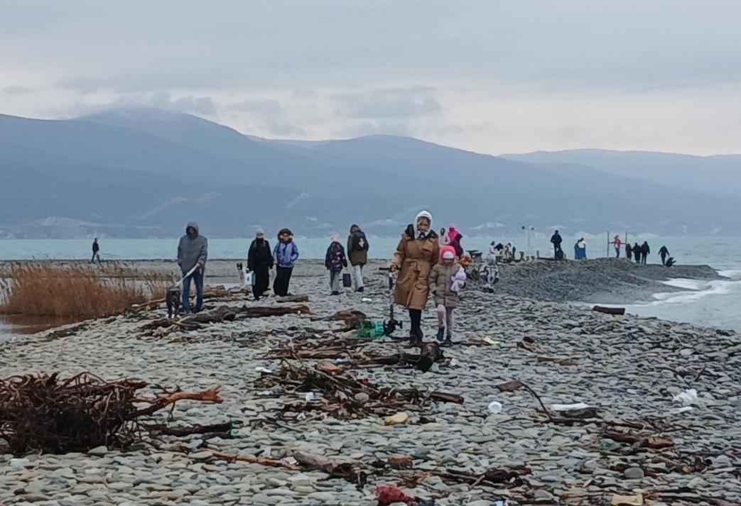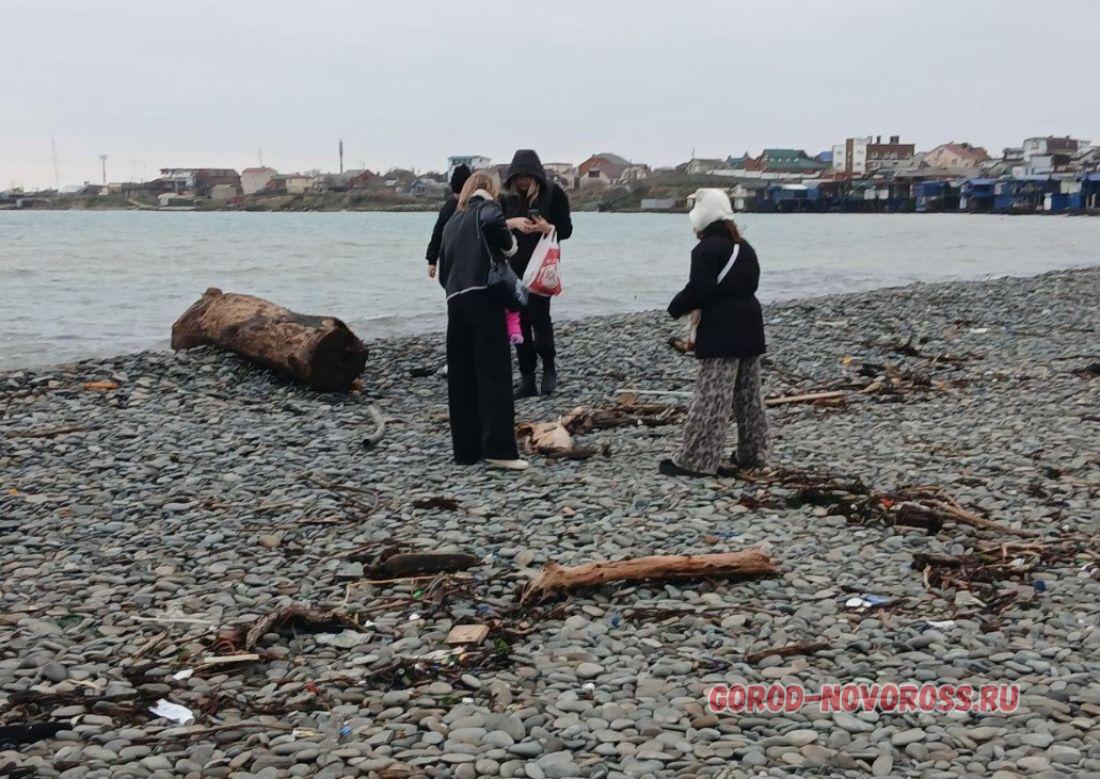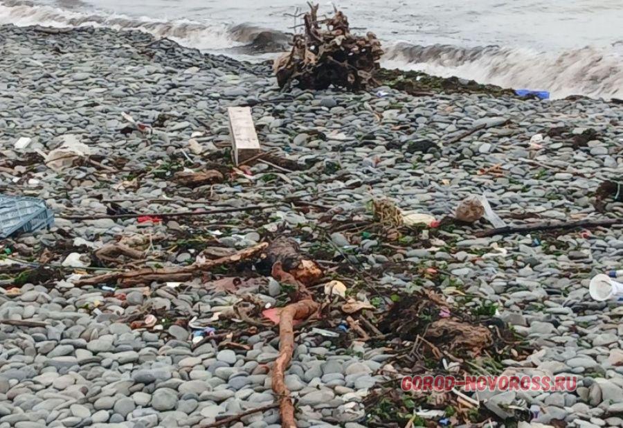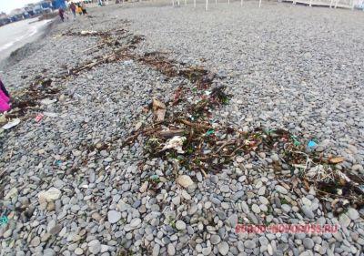 В Новороссийске после шторма пляж усыпан мусорными «дарами моря»