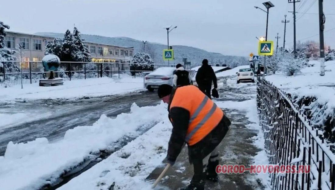 С раннего утра 16 января Новороссийск оказался во власти снежной стихии – осадки продолжались всю ночь, парализовав все транспортные магистрали. На ликвидацию последствий непогоды вышли все коммунальные службы, ТОСы, волонтерские бригады и неравнодушные жители.
