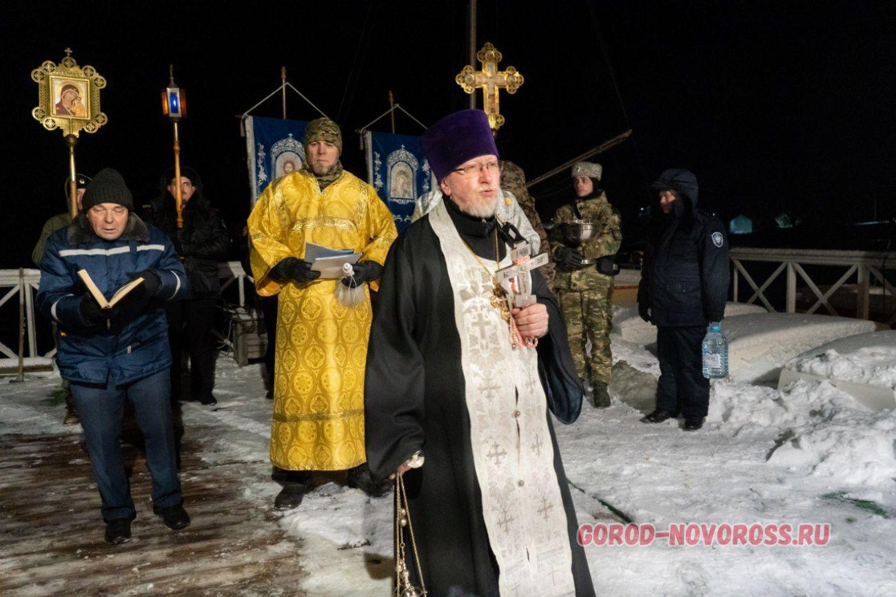 Вечером от храма святой блаженной Ксении Петербургской прошел крестный ход к озеру Абрау, где настоятель храма отец Сергий провел чин освящения Иордани, после чего и начались крещенские купания.