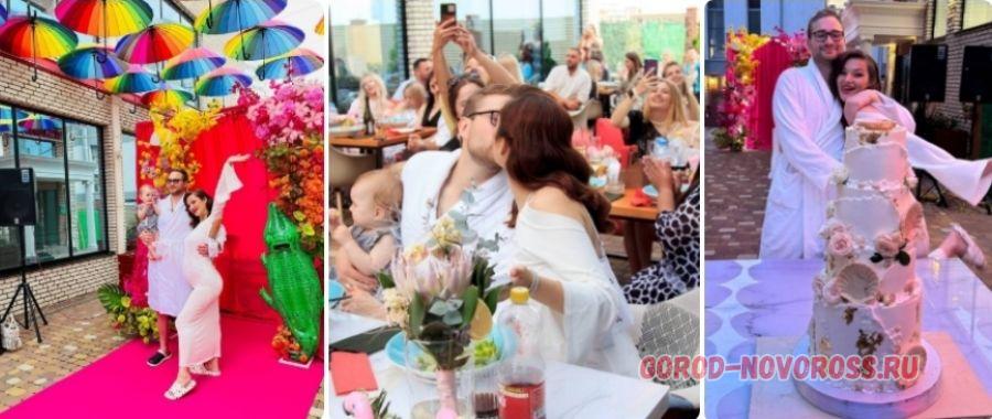 Пляжная вечеринка проходила 5 июня в одном из ресторанов Южного района, в нем было и файер-шоу, и выступление новороссийской кавер-группы, встречу гостей организовало агентство праздников, свадьбу вел модный ведущий, торт был не простой, а четырёхъярусный. И клубника в шоколаде в придачу. СПА-салон подарил молодоженам сертификат на посещение. И это далеко не весь список удовольствий!