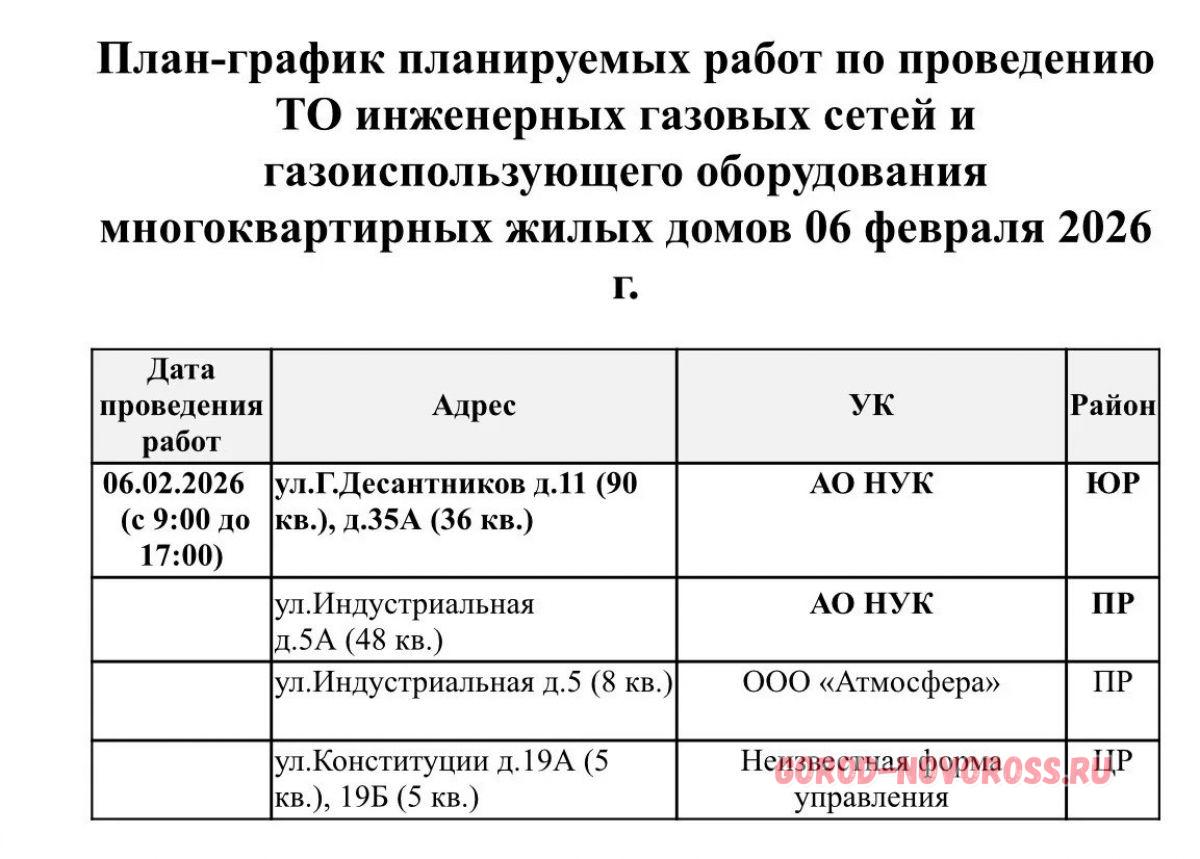 Плановое и срочное отключение электро- и газоснабжения в Новороссийске 06.02.2026