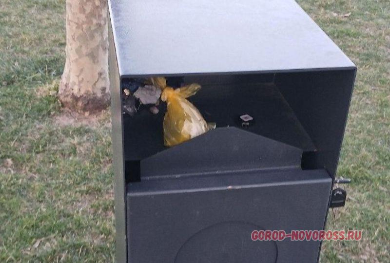 Журналисту «Новороссийского рабочего» в районе мыса Любви удалось разыскать две урны. В глаза они не бросаются, но хочется верить, что владельцы собак о их знают и ими пользуются. Правда, в них бросают и обычный мусор, и окурки.