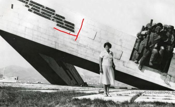 Первоначально фамилией была подписана цитата на памятнике в виде носа корабля «Горела земля, дымились камни. Плавился металл, рушился бетон. Но люди верные своей клятве не попятились с этой земли». Цитата осталась, а фамилия ее автора – Генерального секретаря КПСС – исчезла в перестроечные годы.