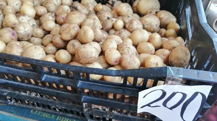 Торговцы предлагают килограмм молодых клубней уже за 150 рублей. Товар из Азербайджана.
