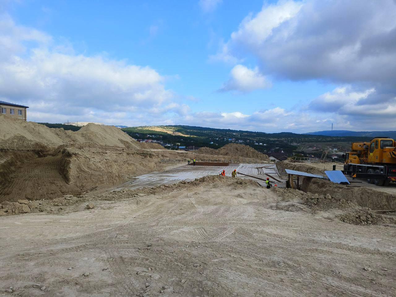 В июне 2024 года специалисты муниципального управления строительства помогали коллегам из края контролировать работы на объекте. Тогда в стадии завершения был котлован. Выполнялось армирование фундаментной плиты и гидроизоляция ливневого резервуара, а также армирование и монтаж опалубки подпорной стены.