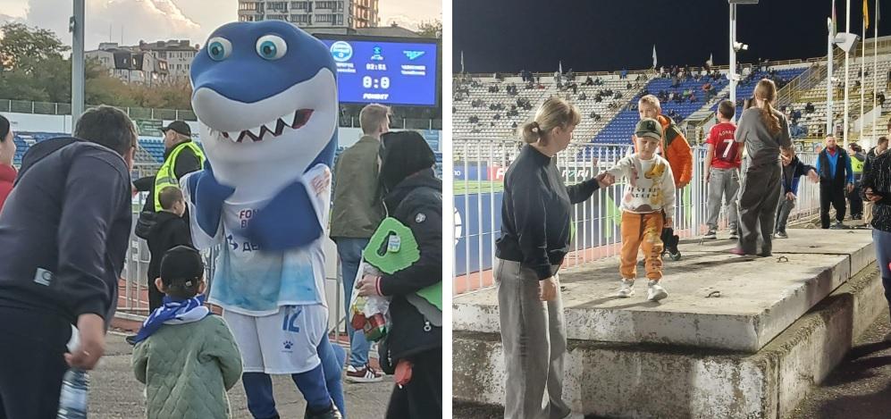 А вот к зрителям были нарекания у охранников-контролеров. Во время перерыва произошел неприятный случай. Дети под музыку танцевали на больших бетонных плитах. Один мальчик случайно или неслучайно толкнул другого так, что тот упал и сильно ударился, пришлось обращаться к медикам. Благо, во время матчей присутствует машина «Скорой помощи». Никого из родителей в этот момент инцидента рядом не было. Стихийную дискотеку тут же прекратили.