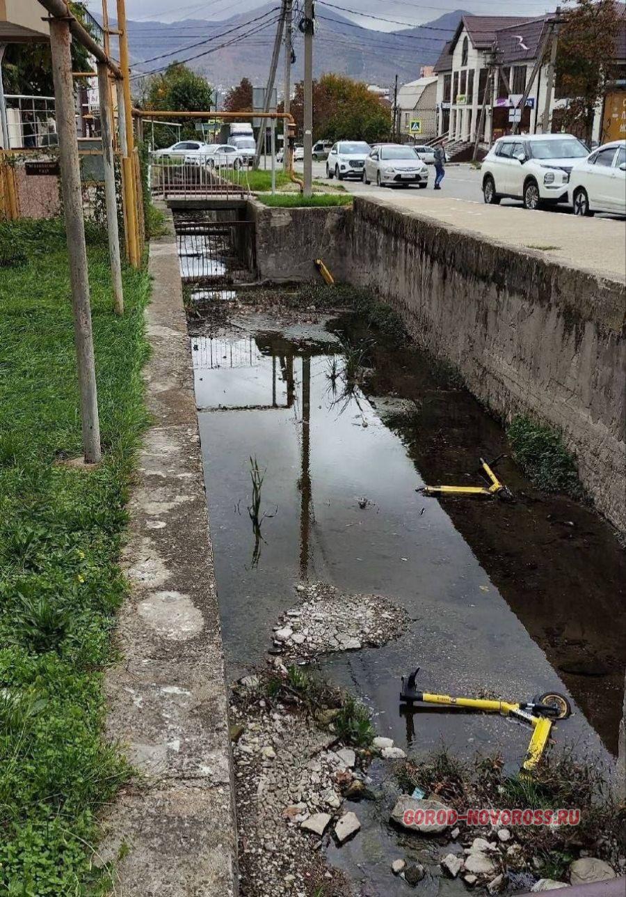 Кто-то топит их в канаве на Луначарского. Пострадали уже шесть самокатов.