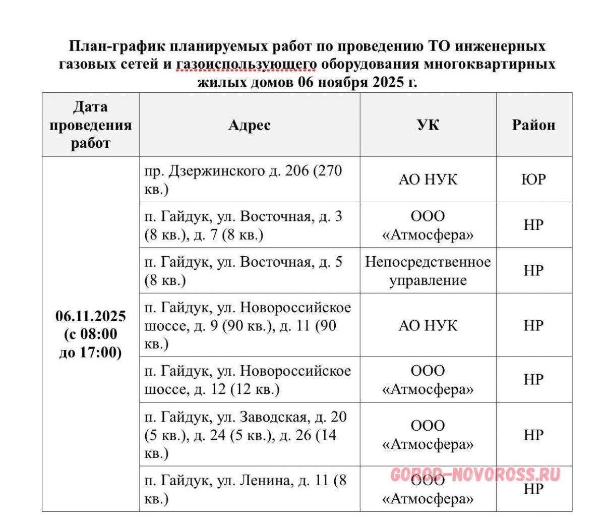Плановое и срочное отключение электро- и газоснабжения в Новороссийске 06.11.2025