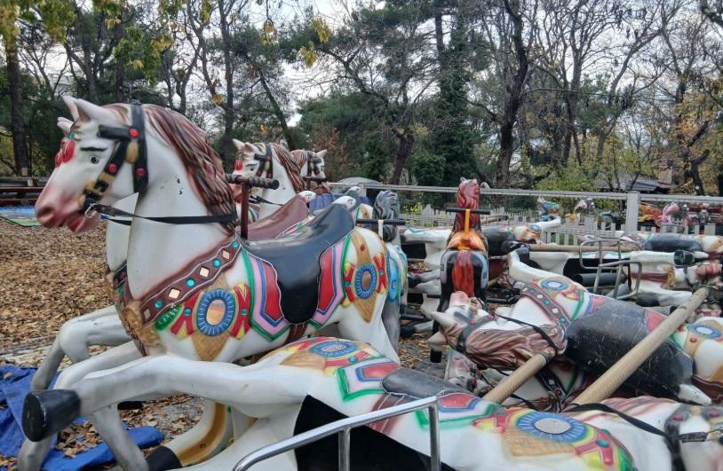 Детей катали до последнего…В парке Новороссийска демонтируют лошадок и карусели