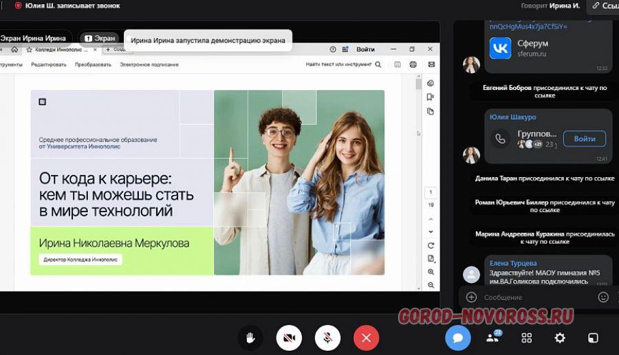В прямом эфире объединились 494 школьника из Новороссийска, педагоги общеобразовательных учреждений и ведущие эксперты IT‑индустрии из Университета и Колледжа Иннополис.