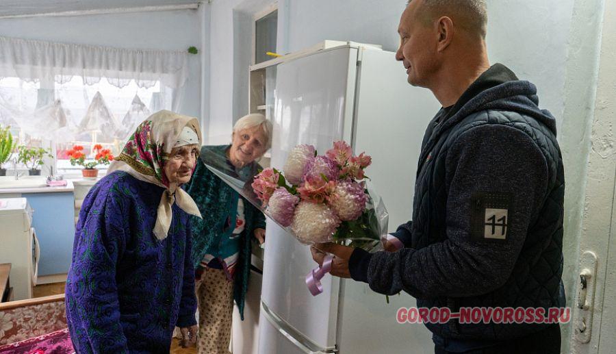 В день рождения бабы Паши гости приехали поздравить именинницу с утра. Представитель Фонда «Жизнь Абрау-Дюрсо», депутат городской Думы Андрей Ермаков, глава сельского округа Абрау-Дюрсо Ольга Котляр вручили цветы и подарок.