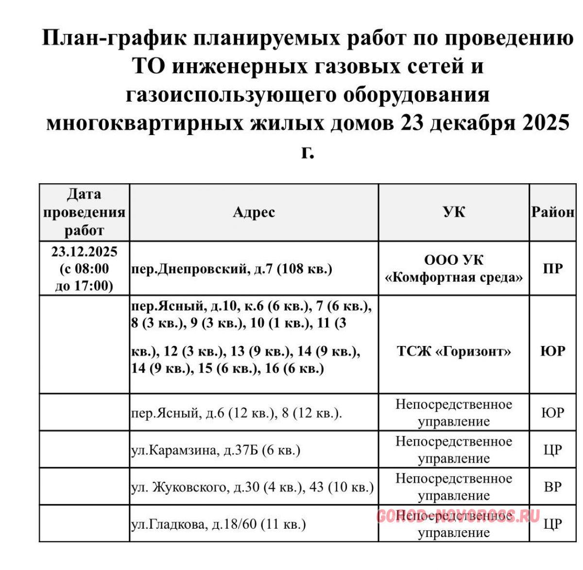 Плановое и срочное отключение электро- и газоснабжения в Новороссийске 23.12.2025