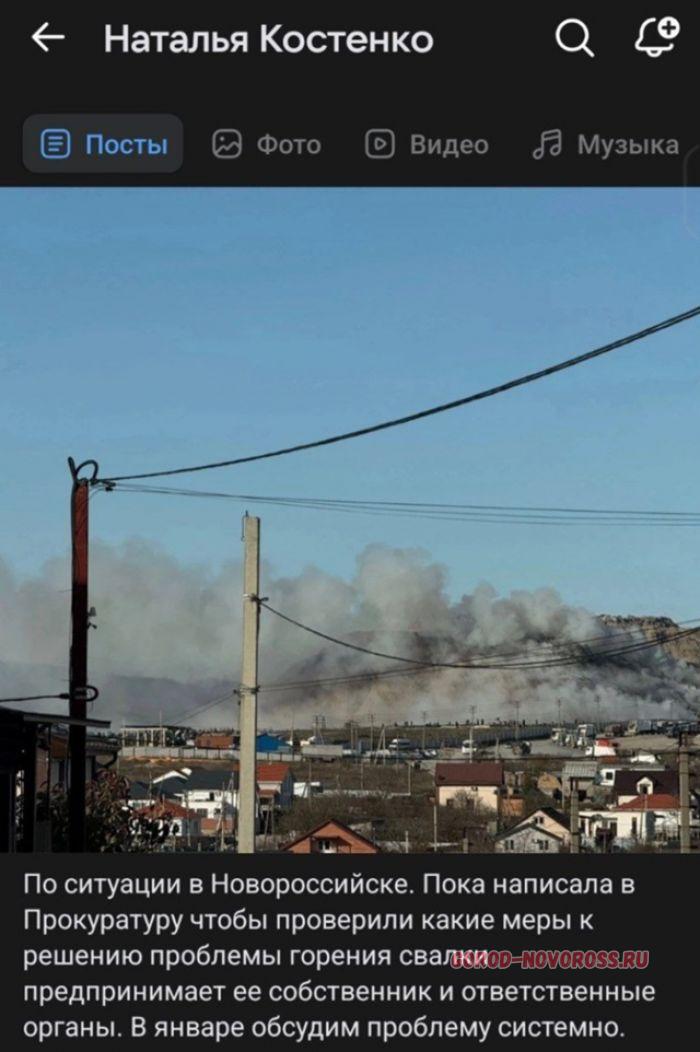 Депутат Госдумы обратилась в прокуратуру по поводу горящей свалки в Новороссийске
