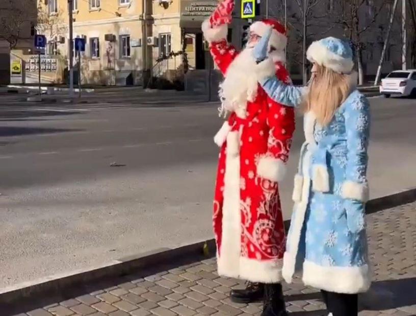 В Новороссийске Дед Мороз и Снегурочка поднимают настроение водителям в пробках