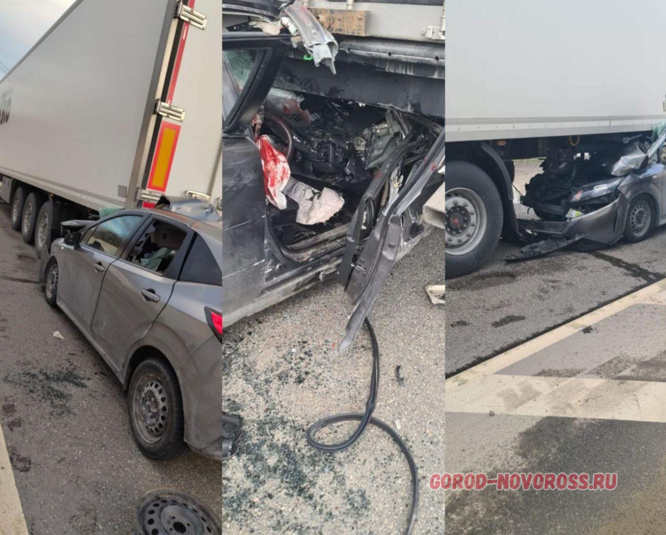 Под Новороссийском легковушка на скорости влетела в грузовик