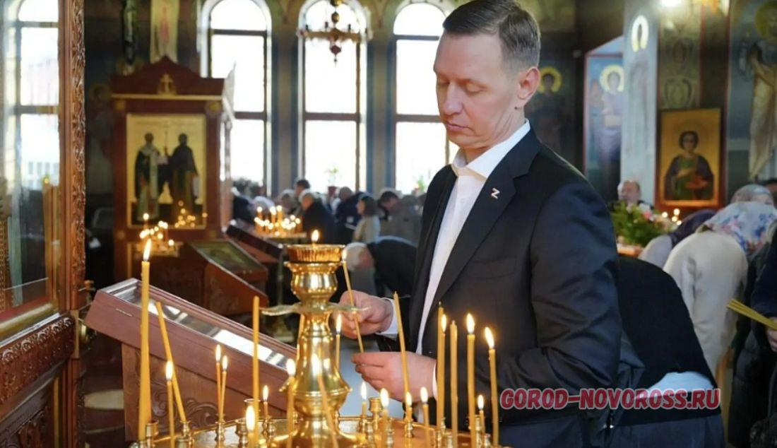 Вместе с православными новороссийцами в праздничном богослужении приняли участие глава города-героя Андрей Кравченко.