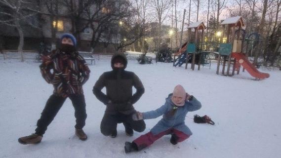 Все равно мороз пробирает до костей, даже лыжный костюм не спасает! Мои дети много лет занимаются в танцевальном коллективе «Чудо-Юдо», танцуют русскую плясовую. Решили танцевать русскую присадку. Уморительное, конечно, было зрелище, когда четверо человек в темноте у остановки отплясывают вприсадку! Ожидающие автобуса периодически выглядывали из остановки, чтобы посмотреть, как зажигает наша компания. У водителей, проезжающих мимо автомобилей, головы сворачивались от удивления.