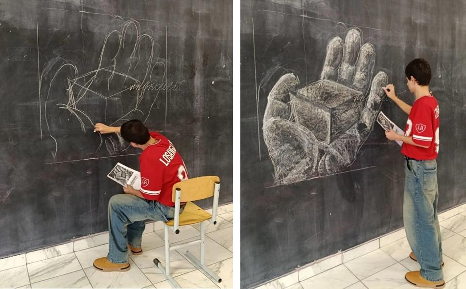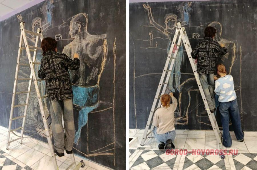 Сегодня две новые работы презентовали юные художники из арт-клуба «Стена», где рисуют мелками на больших грифельных стенах.