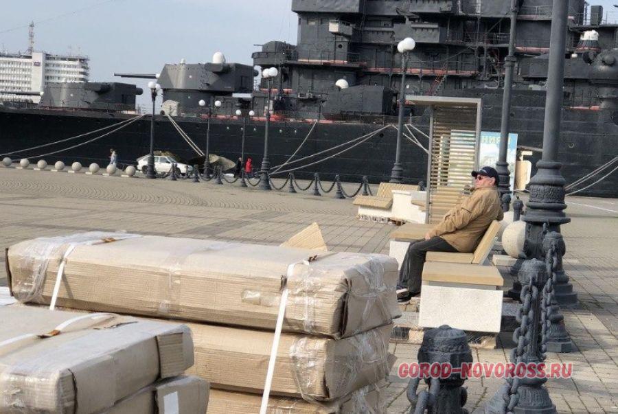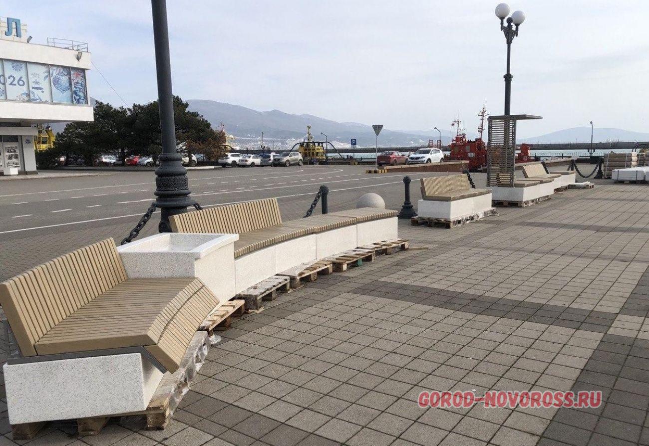 Сразу после нового года на площади перед морвокзалом появились новые скамейки, которые городские власти планируют установить на набережной. И попросили горожан оценить их.