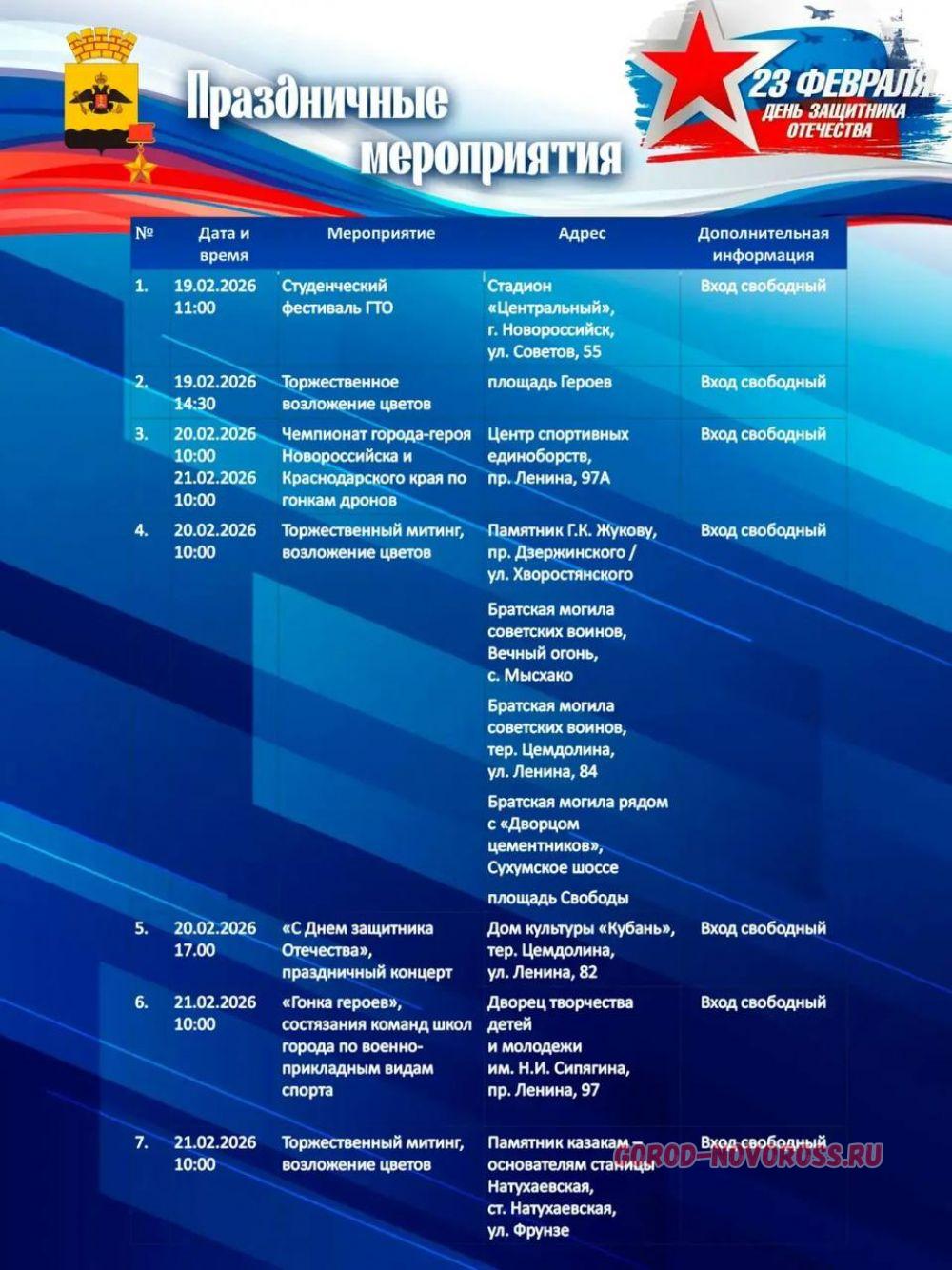 День защитника Отечества в Новороссийске: афиша мероприятий