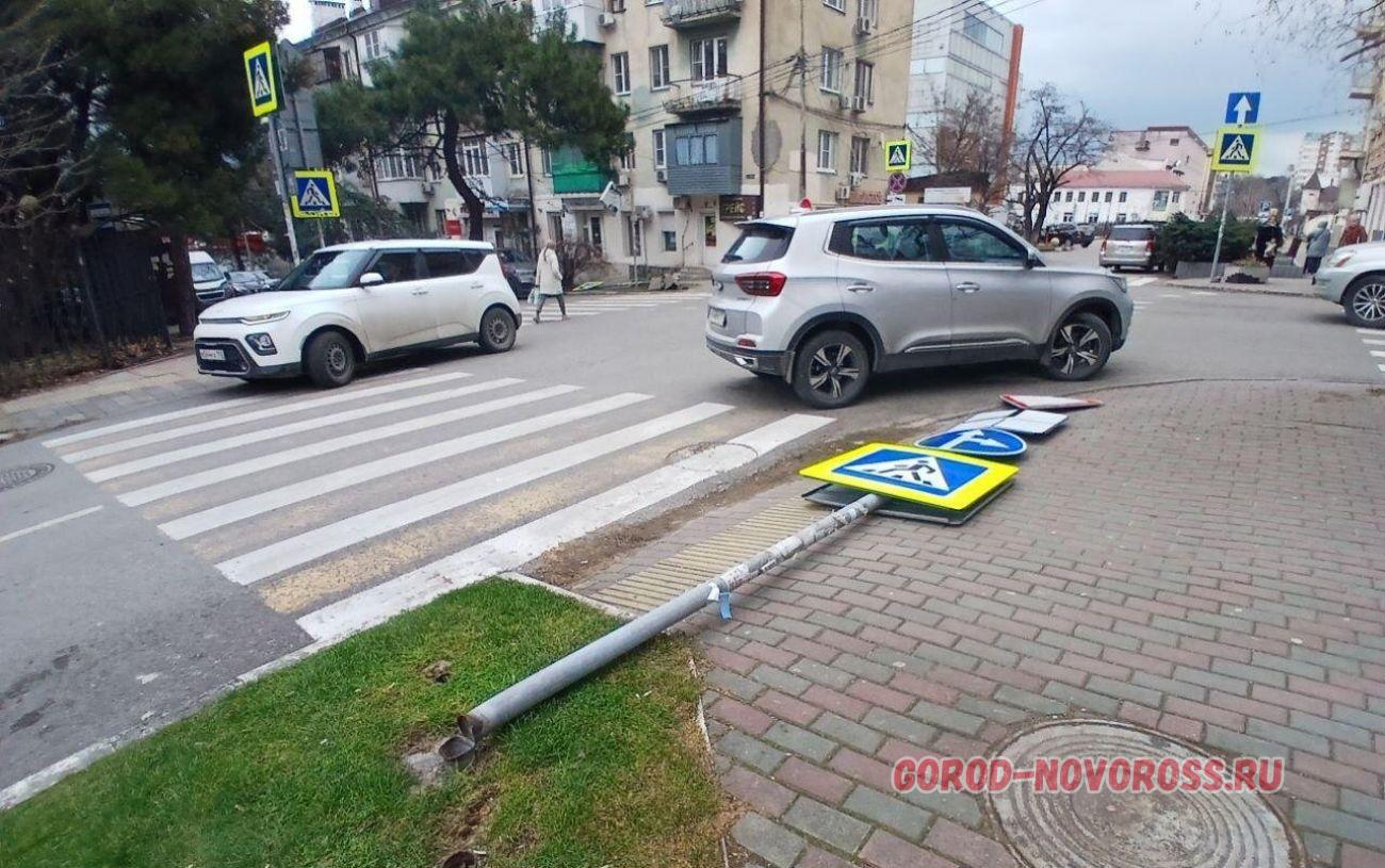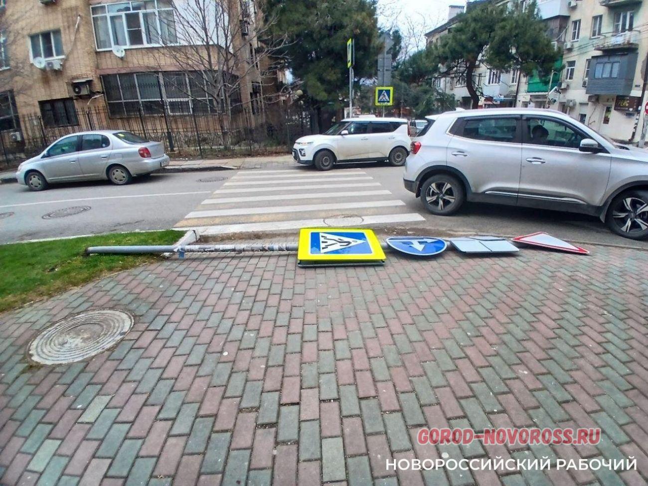 В Новороссийске прохожие замечают упавшие дорожные знаки
