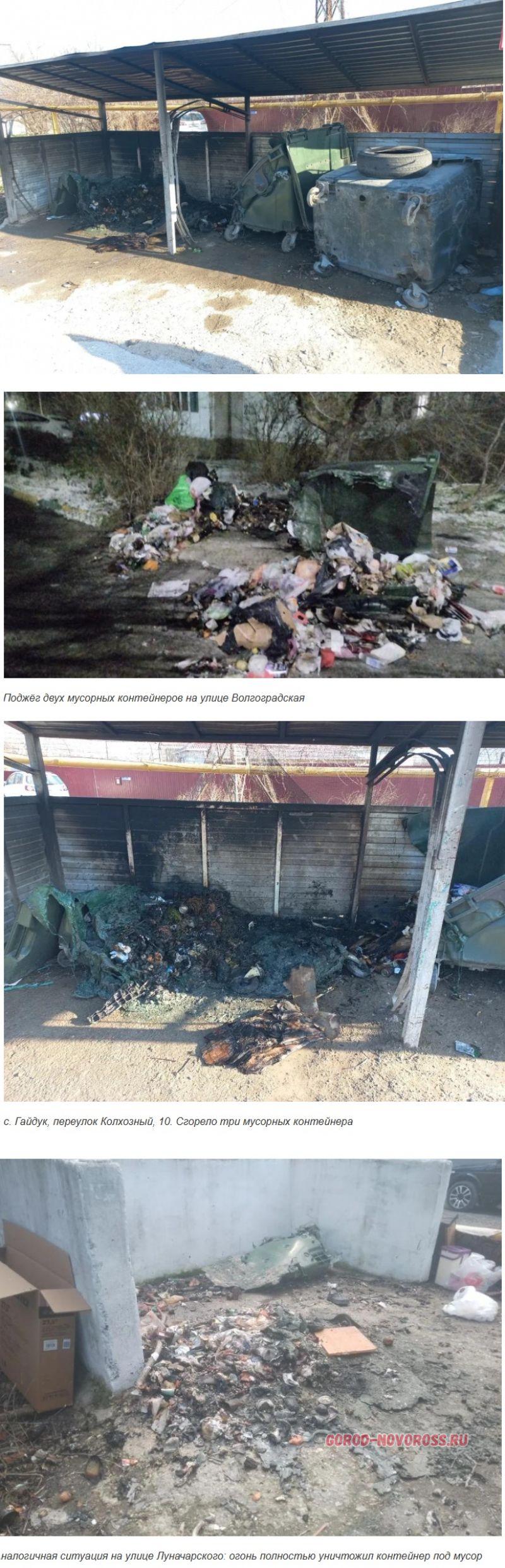 Адреса поджогов зачастую расположены в отдаленных районах Новороссийска, что может создавать дополнительные трудности для оперативного реагирования. На днях мусорный контейнер подожгли в селе Гайдук в переулке Колхозном. Есть случаи поджогов также на улицах Луначарского, Рыжова и Волгоградской. В итоге контейнеры уничтожены, а общий ущерб уже исчисляется сотнями тысяч рублей.