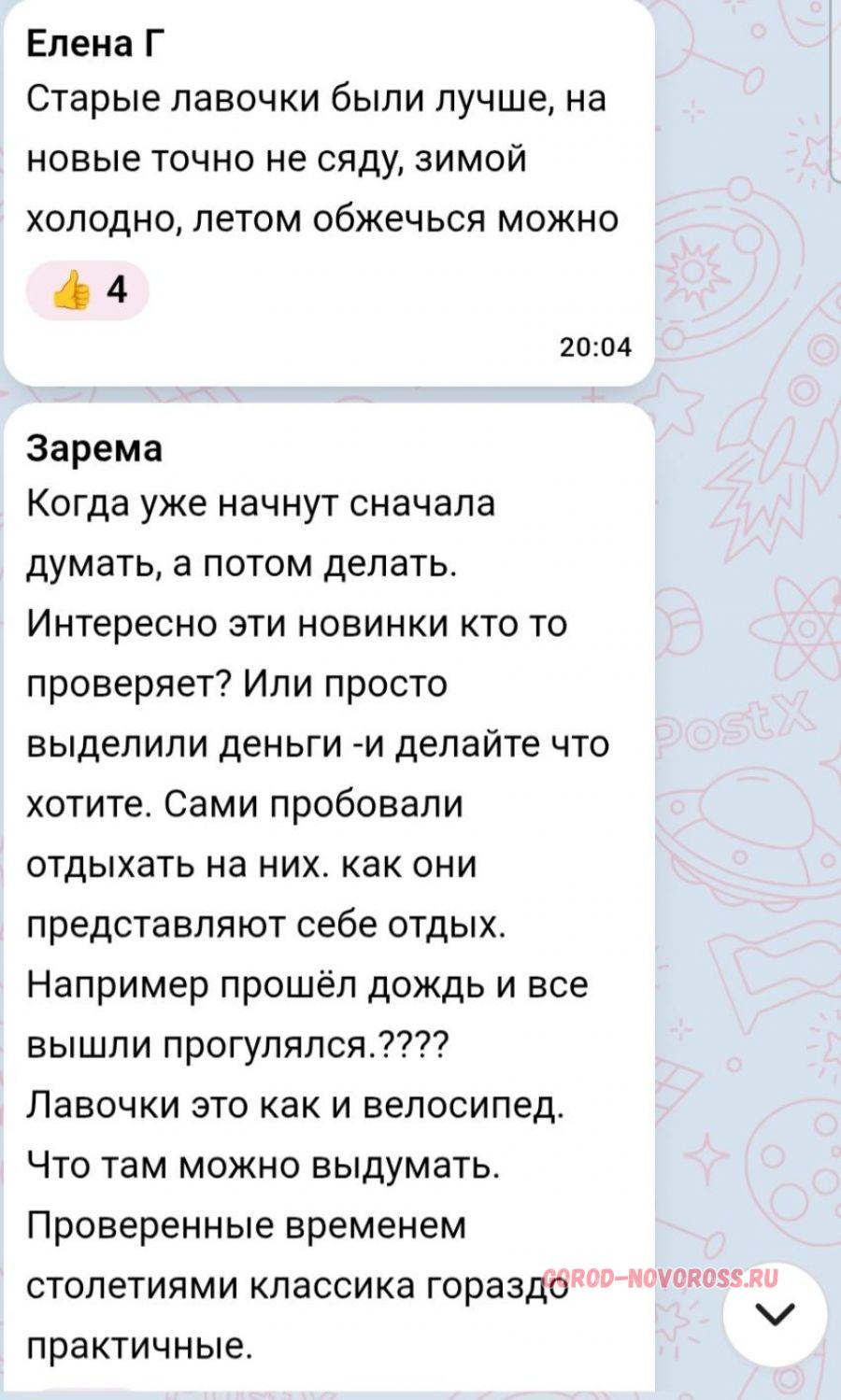 Новороссийцы всё же оказались недовольны выбором лавочек, отметив, что лучше было бы остановиться на проверенных классических вариантах и не выдумывать «велосипед». А что думаете на счёт скамеек вы?
