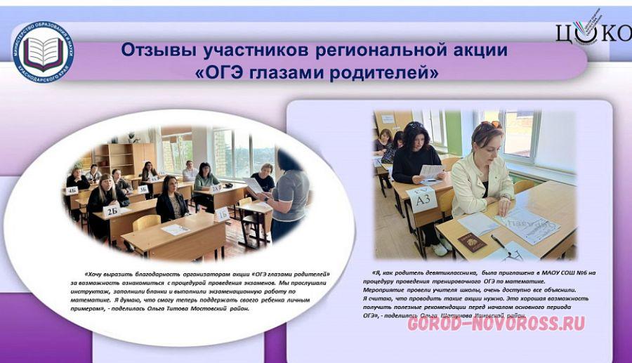 В городе-герое Новороссийске, как и в Брюховецком, Кавказском, Каневском, Крыловском, Мостовском, Туапсинском районах и г.-к. Геленджике, дан старт региональной акции «ОГЭ глазами родителей».