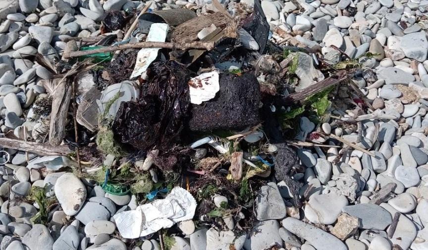 Впервые темные пятна на песке и гальке жители увидели в начале марта. Тогда, после шторма на берег было выброшено много всякого мусора. Снимки, на которых видно, как выглядела полоска у воды, Георгий Михайлович сделал 8 марта.