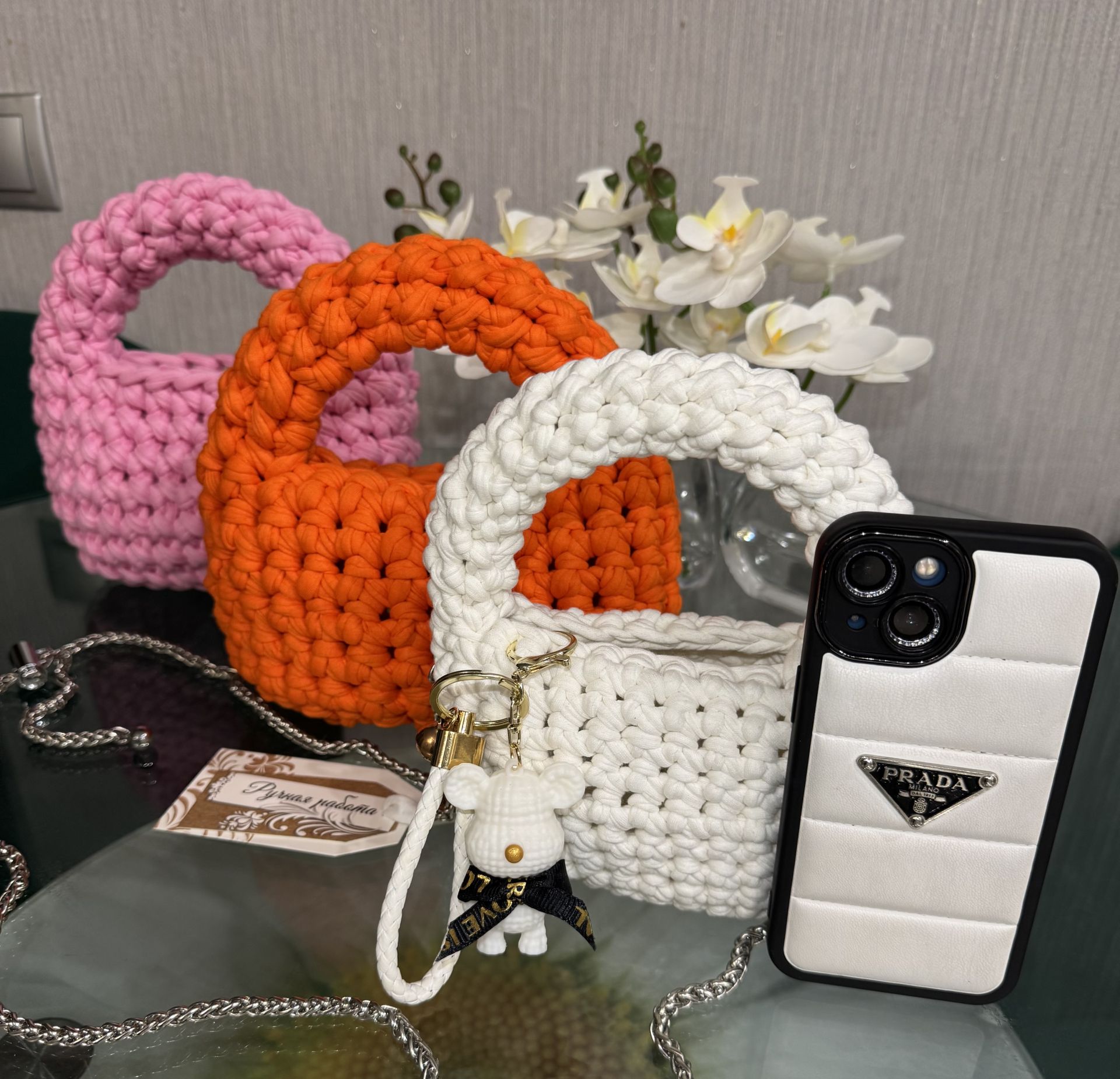 Женские сумочки 👜 ручной работы из акриловых и хрустальных бусин. Вязаные трендовые сумочки. Чехлы на телефон. Брелоки