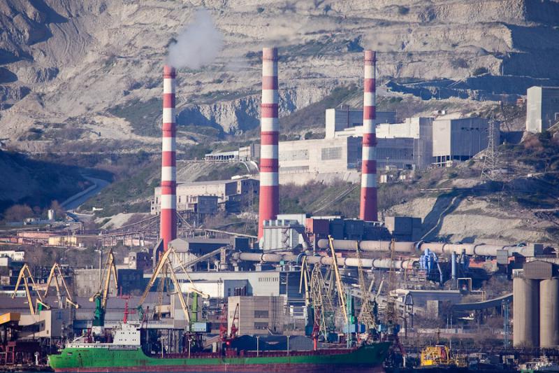 Новороссийск. Вид на цементный завод. Три трубы